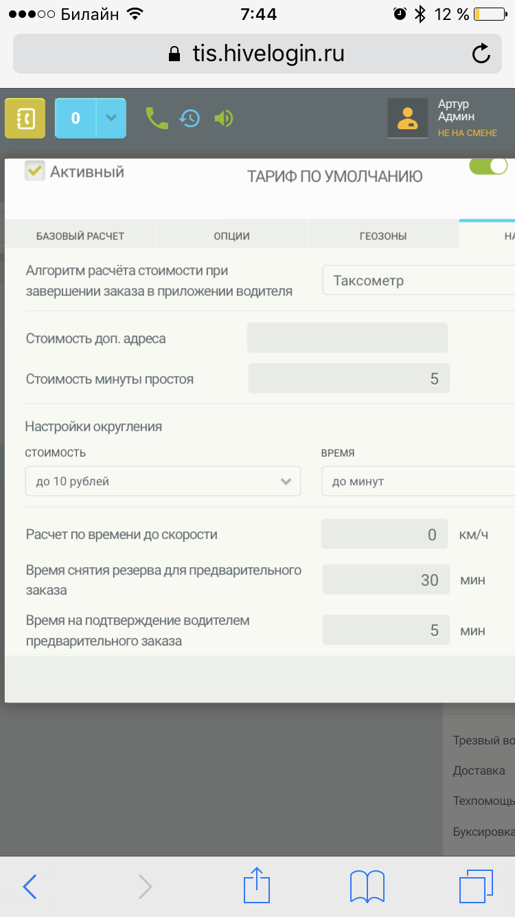 С настройками как на фото тестере тарифов работает, а в реальности нет.