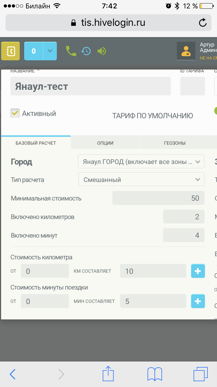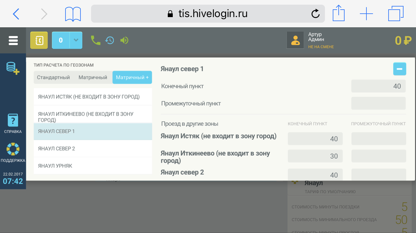 Движение между зонами. Настройка тарифа.
