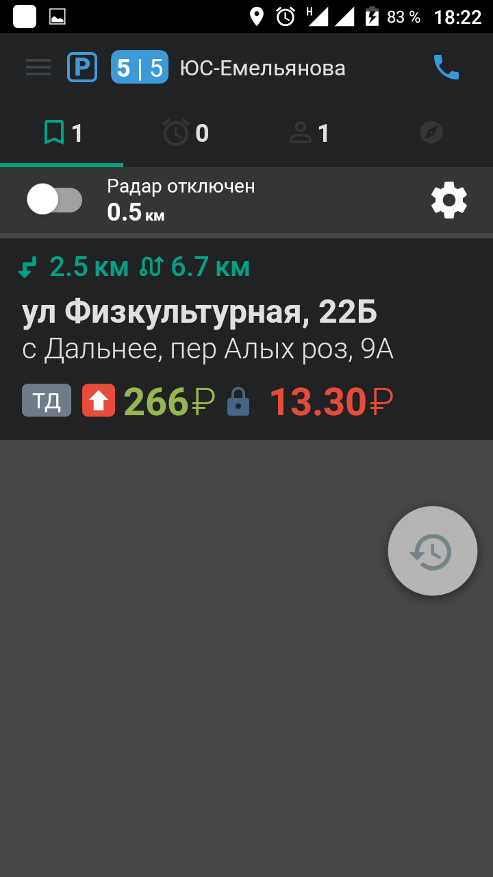 1. Переместить сортировку заявок по ( Расстояние, Время) в другое место экрана