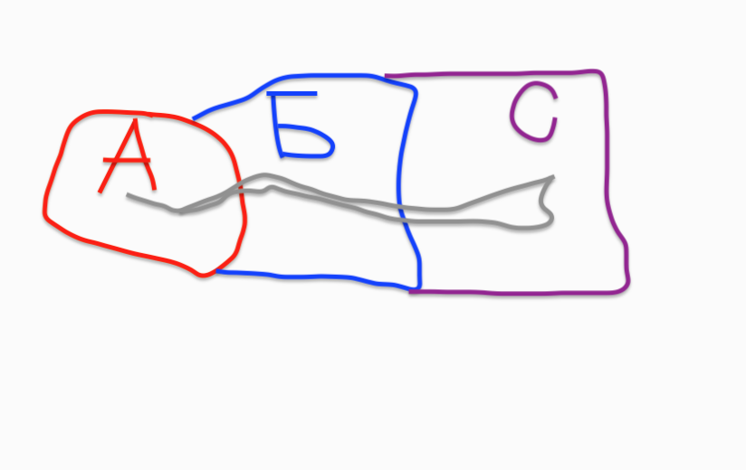 Три геозоны: А, Б, С - геозоны находятся вдоль одной прямой